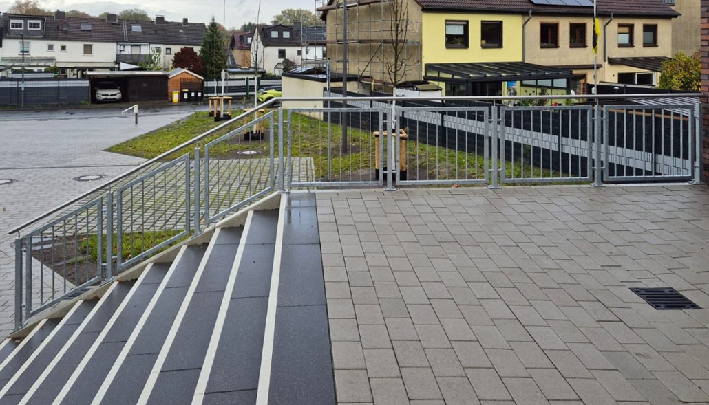Im Auftrag der Stadt Dortmund erstellte und montierte Curt Ebert Zaun und Tor im Rahmen umfangreicher Renovierungen in den Monaten Juli und Oktober 2025 an einem Gymnasium in Dortmund-Aplerbeck und einer Grundschule in Dortmund-Huckarde mehrere Handläufe und Geländer.